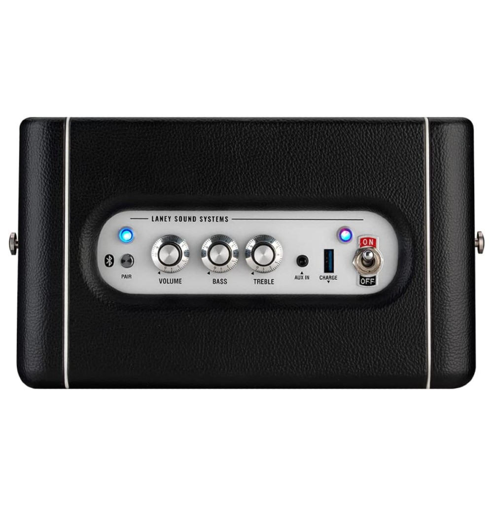 Celebrate your music and have your own personal festival anywhere with the LANEY SOUND SYSTEMS Bluetooth speaker. Stylish, portable and powerful, the Laney Sound Systems Bluetooth Speaker’s versatile and responsive onboard EQ delivers high quality thumping bass, satisfying mids and crystal-clear highs - whatever style of Music you listen to. Meticulously designed and engineered, the Laney Sound Systems Bluetooth speaker delivers stunning, detailed and realistic audio-allowing you to enjoy the Music that inspires, relaxes, excites and creates the mood you’re searching for. Powerful yet functional, The Laney Sound Systems Bluetooth speaker wirelessly connects with your audio devices and the fast charging internal battery gives you 20+ hours playtime. Available in two stylish, iconic Laney designs – inspired by over 50 years of British Amplifier design and manufacture. This portable Bluetooth speaker is elegant enough to be used in any area of your home and versatile enough to be used wherever you want to enjoy your Music.