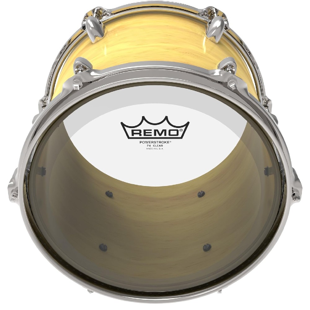 The Powerstroke P4 Clear drumheads feature focused low-end tones with controlled sustain, well-defined attack, and increased durability.