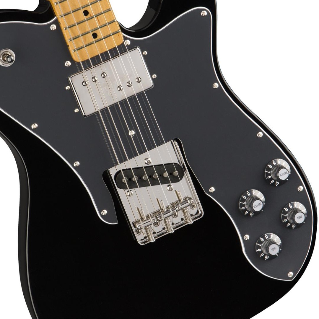 Player-friendly features include a slim, comfortable “C”-shaped neck profile with an easy-playing 9.5”-radius fingerboard and narrow-tall frets, as well as a vintage-style string-through-body Telecaster bridge with barrel saddles for solid string stability.