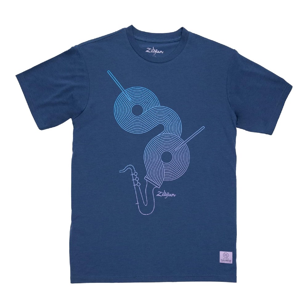 This limited edition Zildjian 400th Anniversary design celebrates the birth of jazz music and the role of Zildjian cymbals during that era. During the 1930s to 1950s, Avedis Zildjian was quick to embrace the talented musicians who were leading the jazz movement. Having been discriminated against during his own childhood as an Armenian living in Turkey, Avedis vowed there would be no place for discrimination at the Zildjian Company. He worked closely with African-American artists like Chick Webb and Papa Jo Jones (who helped Avedis develop the HiHat). During this period of innovation the "Paper Thin Crash," "Ride," "Splash," "HiHat," and "Sizzle" cymbals were all developed and named by Avedis. To celebrate this rich time in Zildjian history, the Jazz design evokes the collaborative spirit and continuous movement of jazz music. This soft, lightweight tee comes in unisex sizes small to 3XL, making it the perfect fit for every drummer.