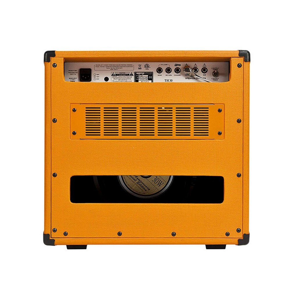 Orange TH30 Combo. The depth of sound within this amp belies its size with our own Voice of the World speaker and an all plywood construction ensuring this combo will never fall foul of the boxy label that plagues so many others on the market. This combo offers the perfect balance between power and portability, making it a perfect grab-and-go combo for for regular gigging. The Dirty channel features the same powerful Shape control first seen on our Thunderverb series, sweeping the midrange from scooped to boosted. Fine-tuning your distorted tones has never been easier or more rewarding. The Clean channel delivers sweet, crystalline cleans, right up to the point of breakup, whilst the Dirty channel remains unerringly focussed, steeped in complex harmonic overtones even at maximum gain settings. The sheer range of tones that can be dialed in from just six controls is nothing short of jaw-dropping whilst the quartet of EL84 valves convey their own crisp character, breaking up into rich overdrive when pushed to the limit. The switchable output section can be used to tailor the amp to the situation, scaling down from 30 to 15 or 7 Watts. The TH30 combo also features our low impedance valve buffered effects loop.