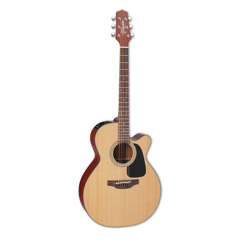 Takamine’s top-line Pro Series presents the new P1NC acoustic/electric, which delivers full and balanced tone from the unique Takamine NEX/grand auditorium style body with a comfortable Venetian cutaway, smooth playability and state-of-the-art onboard electronics. Great warmth, balance and harmonic richness resound from its “X”-braced solid cedar top and sapele back and sides. Other premium features include a mahogany neck and rosewood fingerboard with pearl dot inlays. The unique Takamine split bone saddle bridge provides faultless intonation and excellent acoustic coupling to the top.